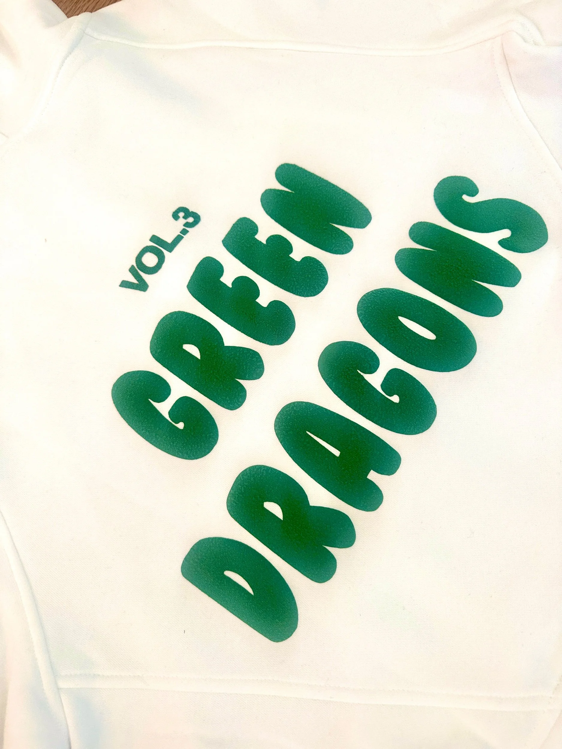 4079 - LADIES - white hooded half zip Lululemon dupe scuba w/lightning bolt & Carroll Dragons