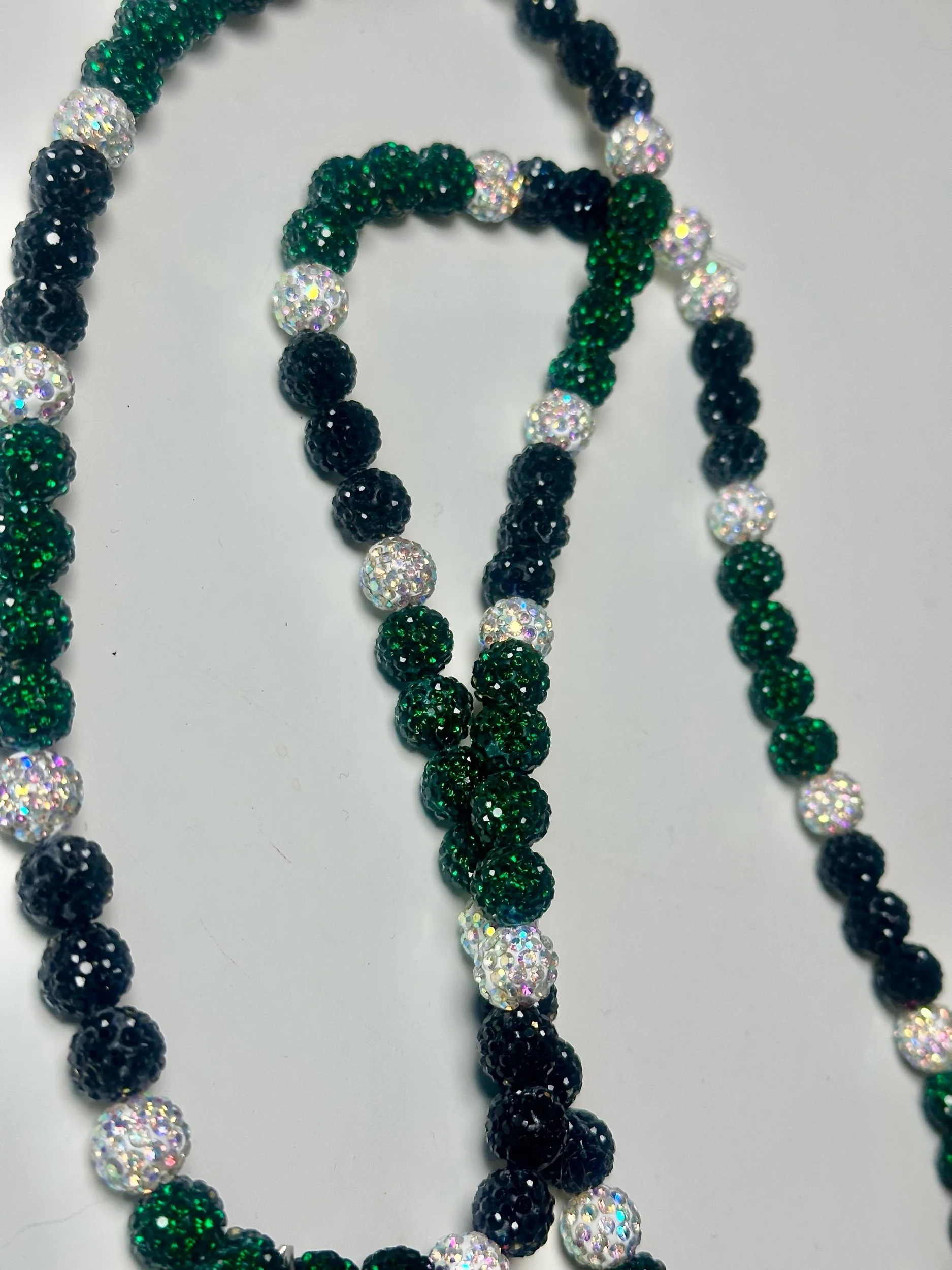 Youth Beaded Necklace with Dragon Logo bling beads with black, green and white balls