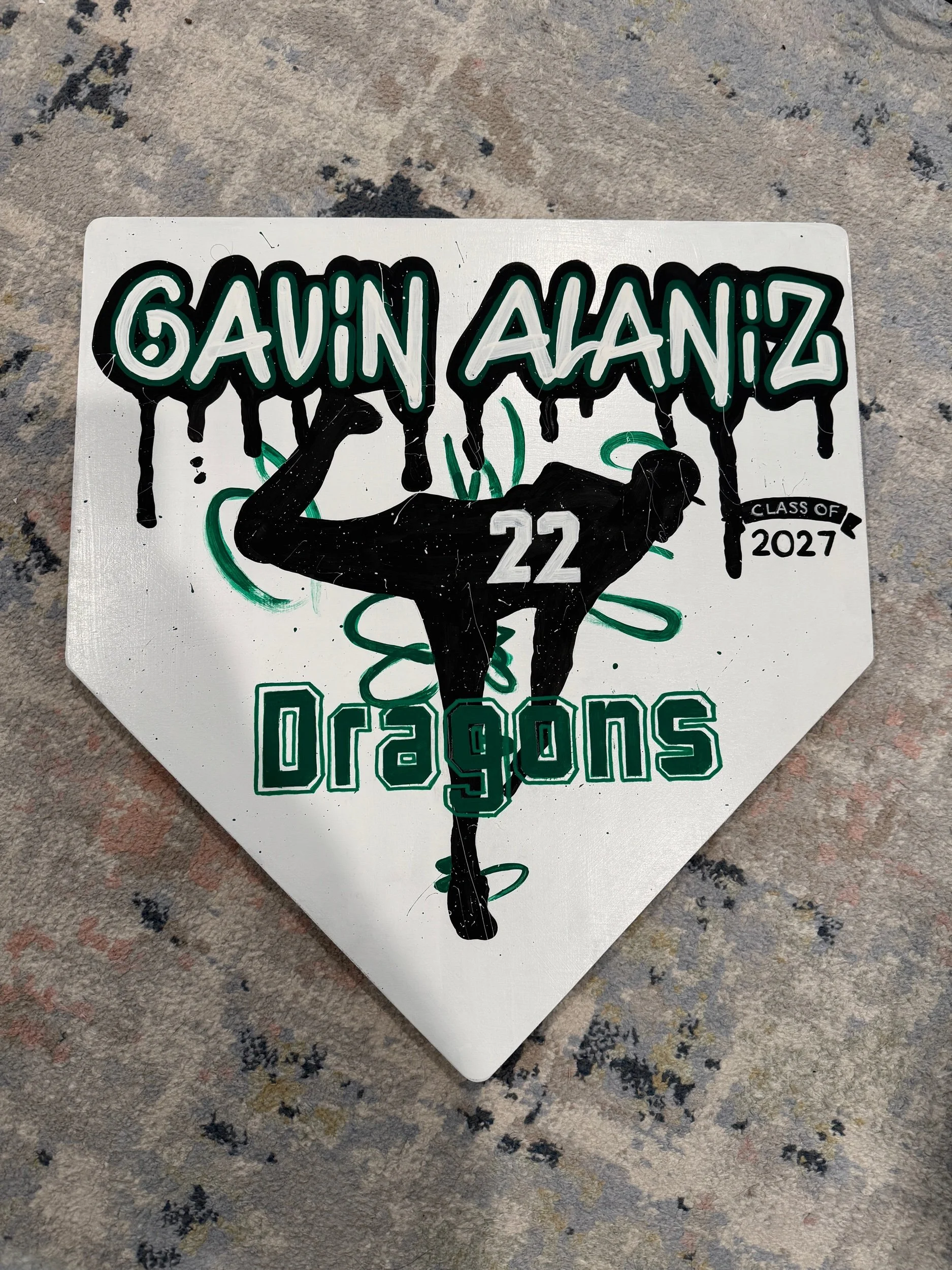 Green 6 panel hat with white Dragons