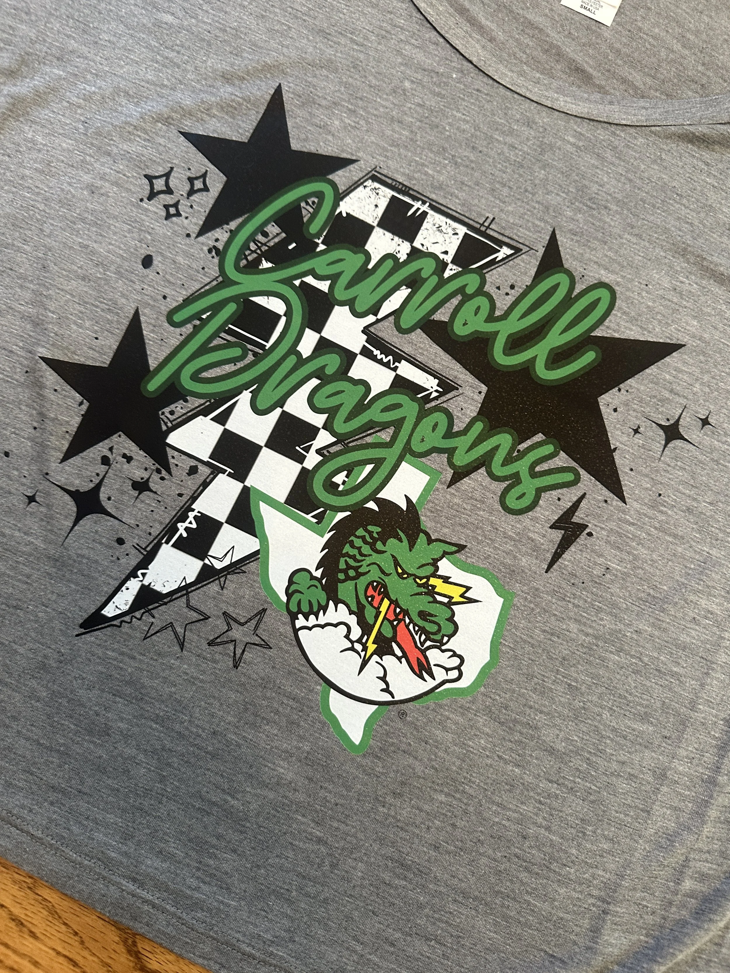 6060- youth Green cotton SUPER SOFT Tri Blend Shirt with Carroll Dragons